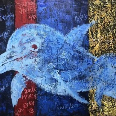 Sophia Xinman Wang / Life and Co-existence ocean series dolphin / 100cm x 88cm / ink and acrylic